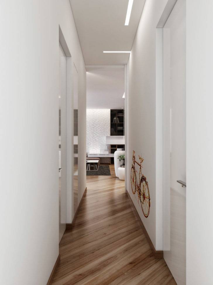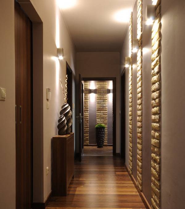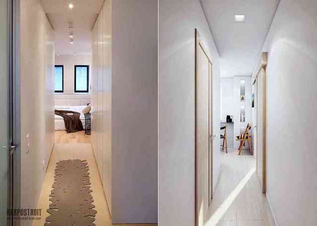 Во время работы с длинным коридором дизайнеры используют общие приёмы: