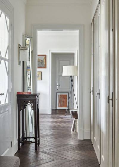 Перфекционизм в дизайне — наше всё. В узких коридорах очень хорошо смотрится правильная геометрическая расстановка. Ровные линии, прямые углы, спокойное освещение и пара идеально развешенных картин сделают своё дело. Убедитесь сами!