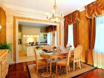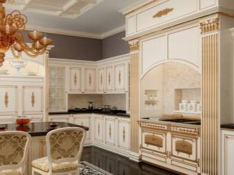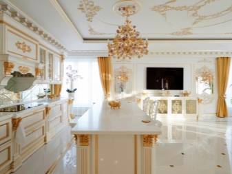 В интерьере современной квартиры вовсе не обязательно строго придерживаться всех канонов стиля ампир. Достаточно соблюсти основные традиции, использовав нейтральные цвета стен и потолка в сочетании с лепным декором и осветительными приборами. В этом случае и кухня, и ванная или спальня будут выглядеть вполне актуально, но с элементами имперского шика.