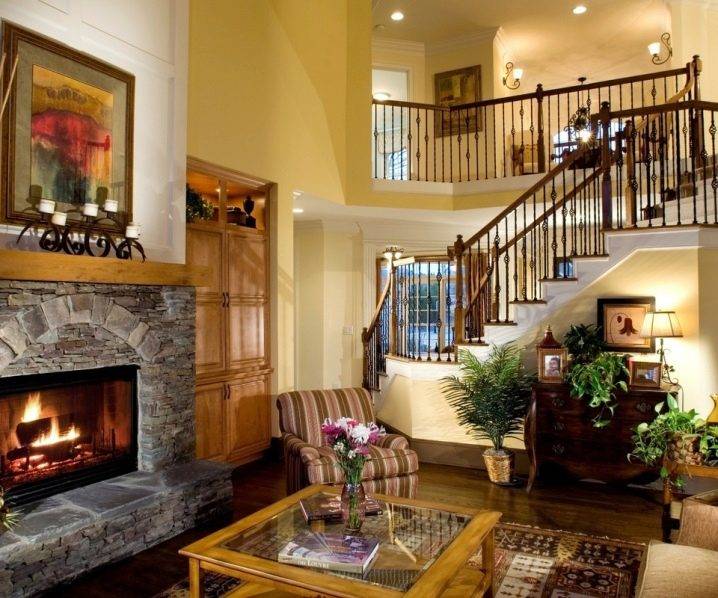 Гостиная с камином на втором этажеИсточник www.gd-home.com
