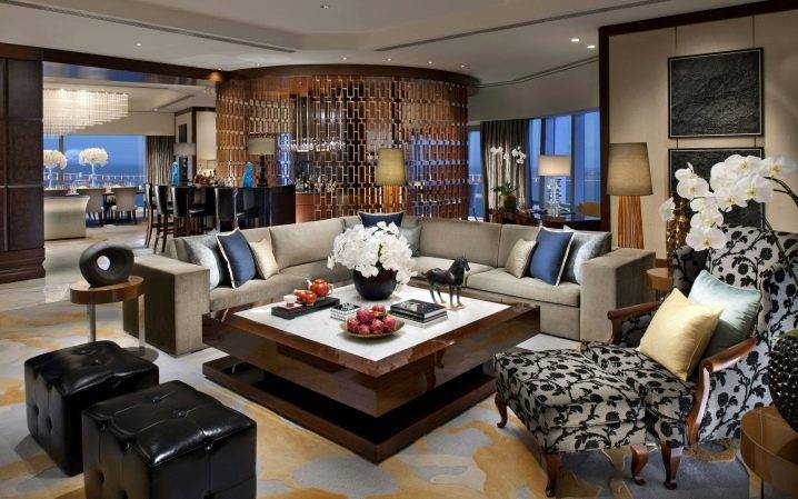 В просторной гостиной намного легче удовлетворить потребности всех членов семьи, независимо от привычек и вкусов. Для этого используют приемы зонирования.