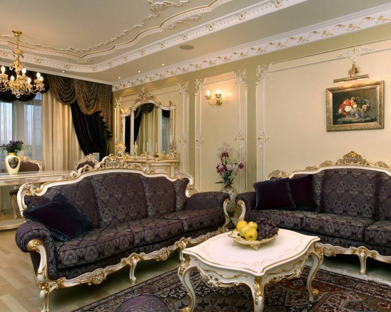 Лепнина – это более приближенный к классическому стилю вариант декора. Однако разнообразие материалов позволяют применять ее и в реализации более современных идей для декора гостиной.