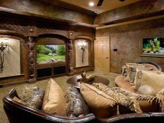 Расположение экрана и углового диванаИсточник basementdesignstudio.com
