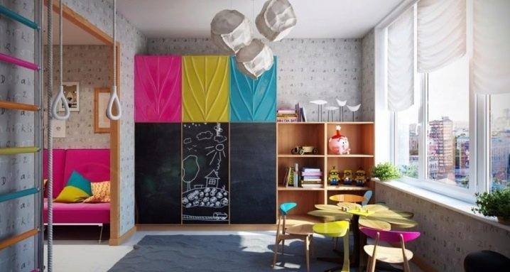 Зал, совмещенный с детской, может быть не только удобным и функциональным, но и очень красивым. Рассмотрим несколько интересных дизайнерских решений.