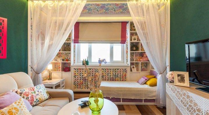 Для этого нужно выделить пространство для ребенка, отделить его от основного помещения перегородкой, раздвижными дверями, занавесками или ширмой, оформить его в светлых теплых тонах, оборудовать многофункциональной мебелью, а потом то же самое проделать с зоной для взрослых.