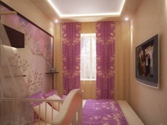 Сюда, как нельзя лучше впишутся фантазийные детские рисунки, постеры героев мультипликационных фильмов, машинки и вигвамы, домики для принцесс – все что угодно. При этом комнаты не будут казаться тесными.