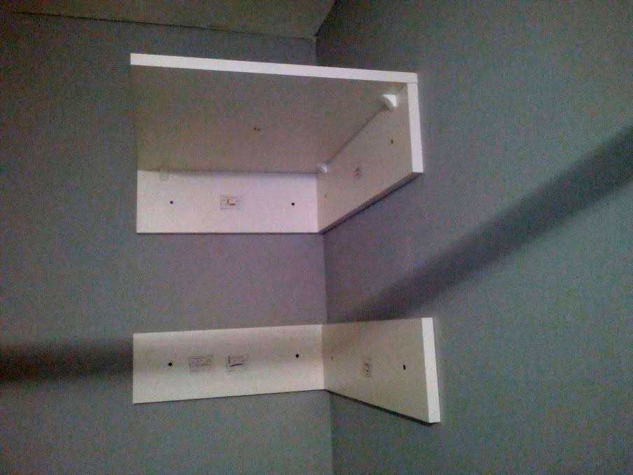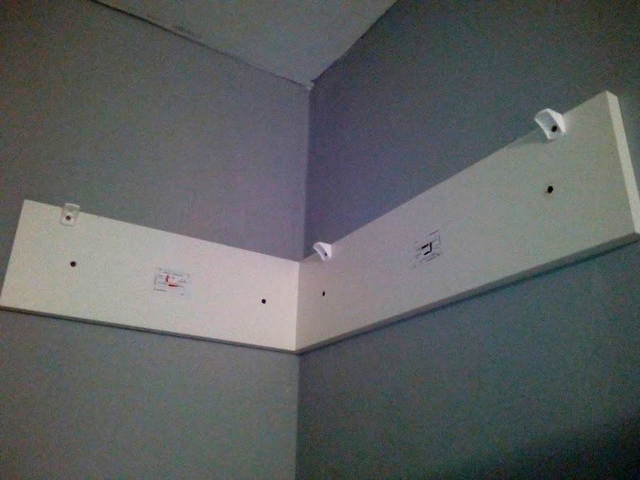 На первом этапе крепим фальш панели под полки по уровню к стене. Фальш панели крепим к стенам с помощью дюбелей.