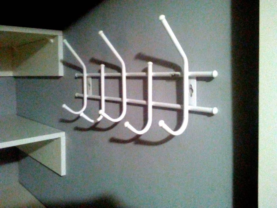 Справа в гардеробной есть пустующее место, которое мы заполнили вешалкой для одежды. Это готовый модуль, которой достаточно было с помощью дюбелей закрепить к стене.