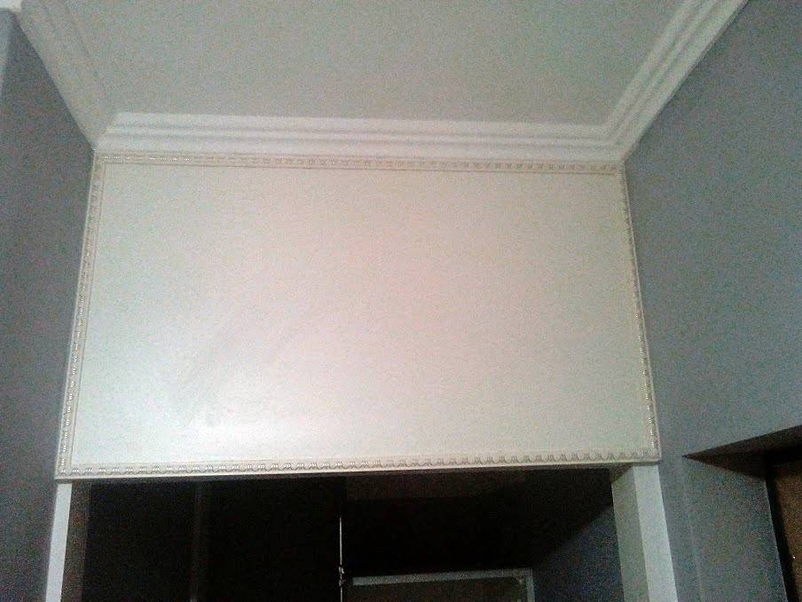 Верх проёма зашиваем фальш панелью, изнутри её крепим к коробу с помощью монтажных уголков. По контуру панель декорируем пластиковой накладкой, одновременно закрывая ей возникшие зазоры из-за неровностей стен.