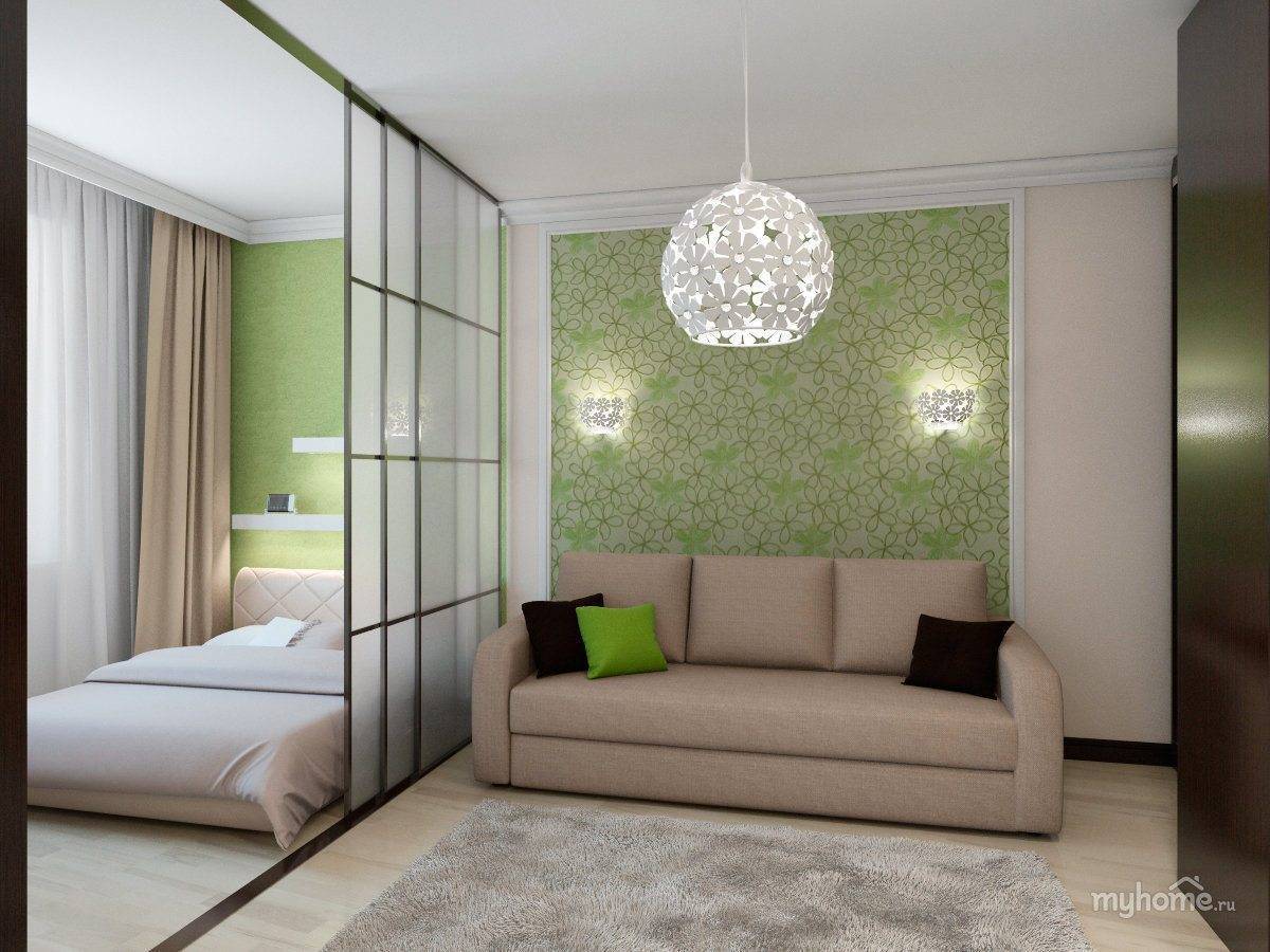 Вариант с откидной кроватью подходит для маленьких комнат лучше всего. Она встраивается в стену или в мебельную стенку. Получается, что места мебель занимает только в разложенном виде. Этот вариант очень нравится детям и подросткам. После ночи кровать убирается в нишу в стене. Полноценная кровать тоже может занять свое место в «однушке». Ее отделяют ширмой или шторами, возможно, перегородкой.