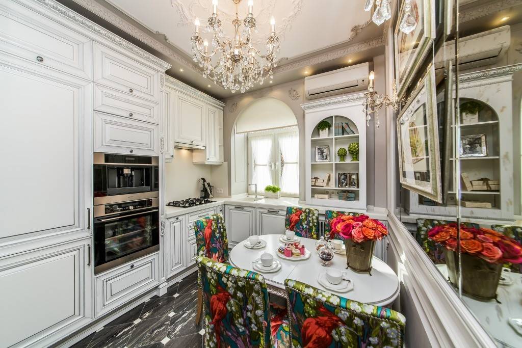 Дизайн классики отлично впишется в коттеджи и элитные апартаменты. На первом месте дорогие и качественные материалы: натуральное дерево, керамика, кожа и камень. Высокие потолки, и большие окна создают дополнительный простор и делают помещение светлее. Технику следует выбирать ретро вариантов, соответствующей основной палитре интерьера.