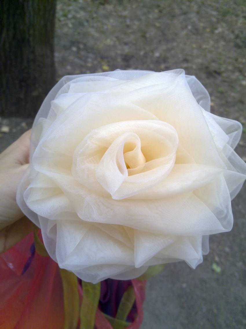 Для цветка подойдет практически любая ткань любой плотности (органза, шелк, атлас, шифон, крепдешин, бархат, лен).