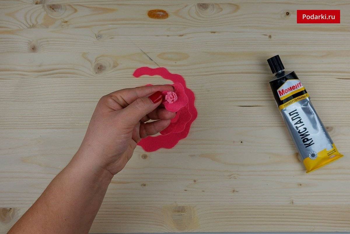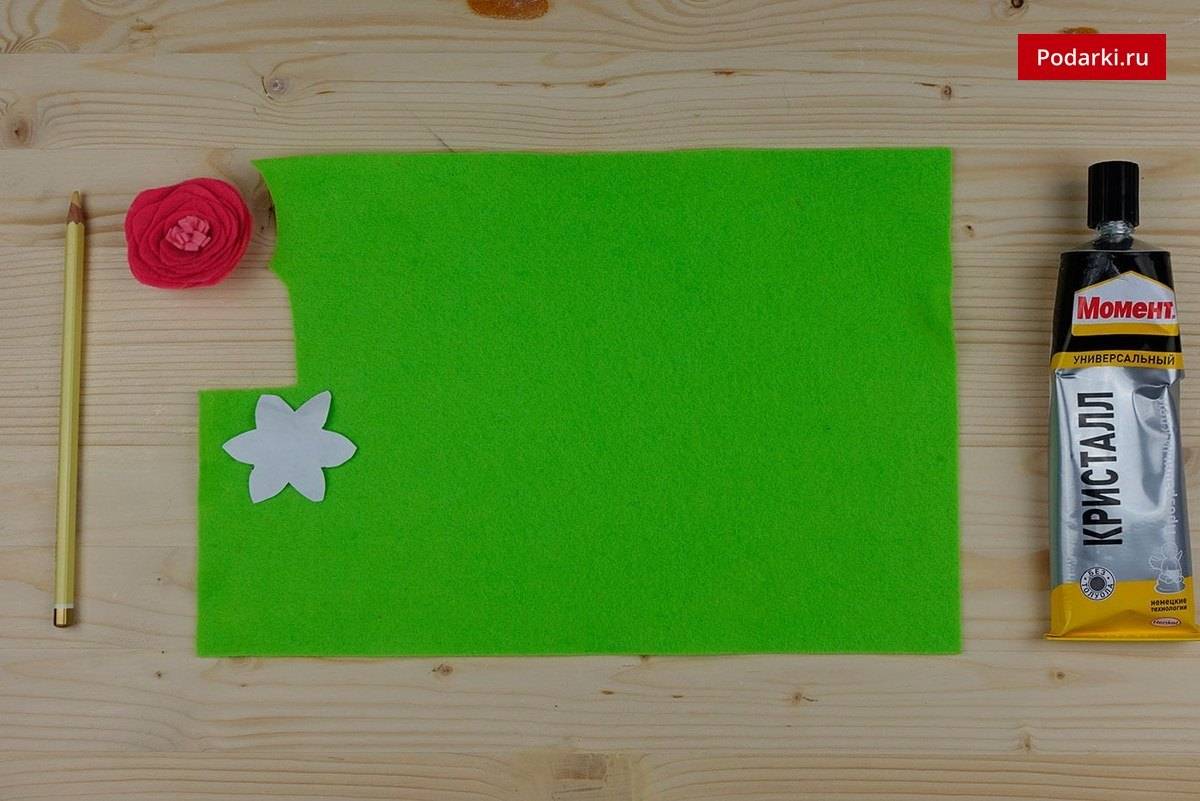 Переносим шаблон цветка на фетр розового цвета. При желании можно выбрать любой другой оттенок.