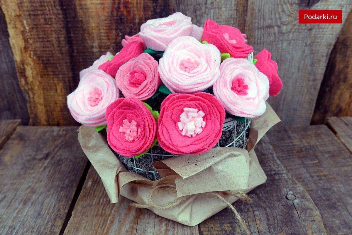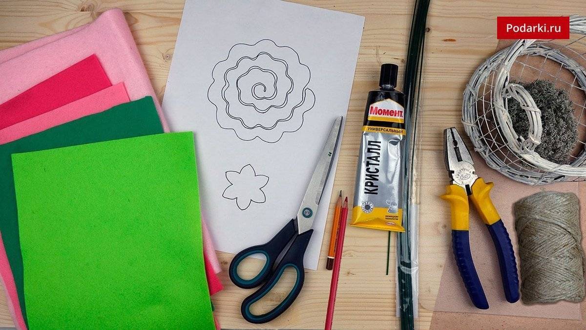 Цветы из фетра могут стать прекрасным интерьерным декором. Для изготовления таких аксессуаров потребуется высококачественный фетр и войлок. Также нужно обзавестись плотной бечевкой с проволокой внутри. Такие стержни можно найти в магазинах для «Хэнд Мэйд». Также мастеру потребуются войлочные шарики, клеевой пистолет, булавки, бумага и ножницы.