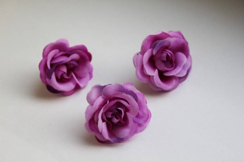 В качестве первого опыта подойдёт творение из тонких натуральных тканей. Полупрозрачная фактура сделает цветок нежным, жёсткость более плотной ткани позволит сделать лепестки формоустойчивыми. Размер первого цветочка лучше выбрать средний: с мелкими деталями нужна сноровка, а сборка крупного удел опытных цветоделов.