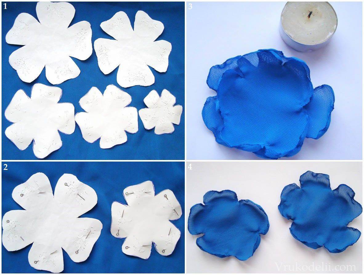 В зависимости от материала и способа изготовления цветка края ткани обрабатывают или оставляют с небольшой бахромой.