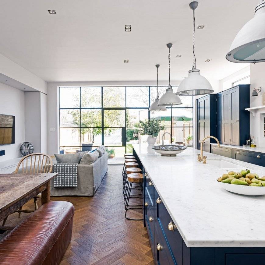 Если конфигурация комнаты удлинённая, можно поочерёдно повесить несколько свисающих плафонов. Вам повезло с площадью? Это даёт прекрасную возможность выделить обеденную группу при помощи светильников, даже в том случае, если она располагается не в центре кухни.