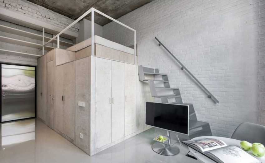 | Нет необходимости покупать кровать, достаточно будет приобрести лишь матрац | Визуальное уменьшение высоты потолков |