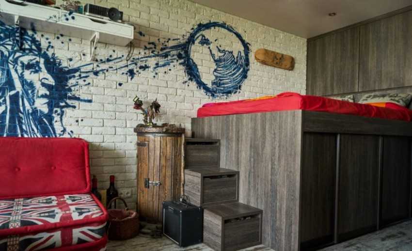 Интересным предложением является подиум, позволяющий рационально разместить всевозможные предметы в комнате. Так, под подиумом можно спрятать в дневное время кровать на колесиках или полозьях, что значительно увеличивает пространство, а на верхней его части – игрушки, компьютерный тол или кресло.