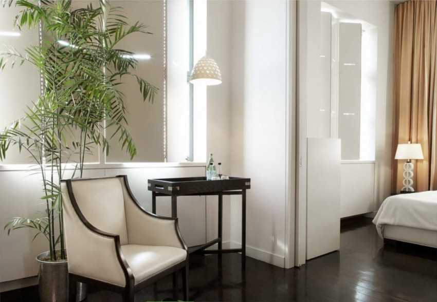Если речь идет о спальне, то романтики и интима в дизайн помещения добавит симпатичная ширма. Также разделить комнату на зоны можно используя большой шкафа или стеллаж. Оформить помещение можно при помощи ниши.