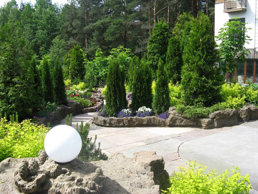 - Кустарники и деревья следует выбирать, которые уверенно держат форму после стрижки. К ним относится барбарис, боярышник, липа, кизильник, клен, спирея и прочие. Также, для симметричной посадки можно использовать ели.