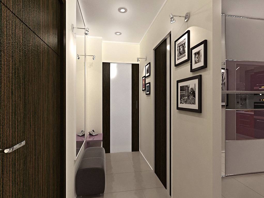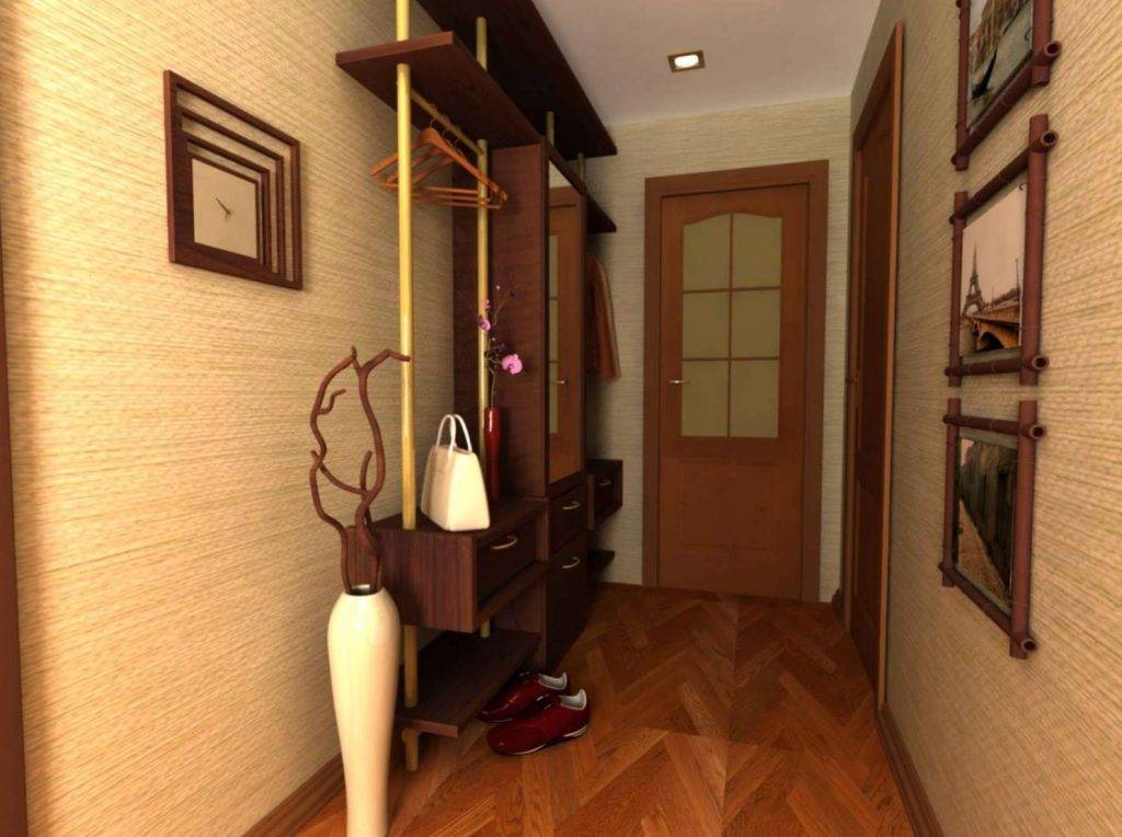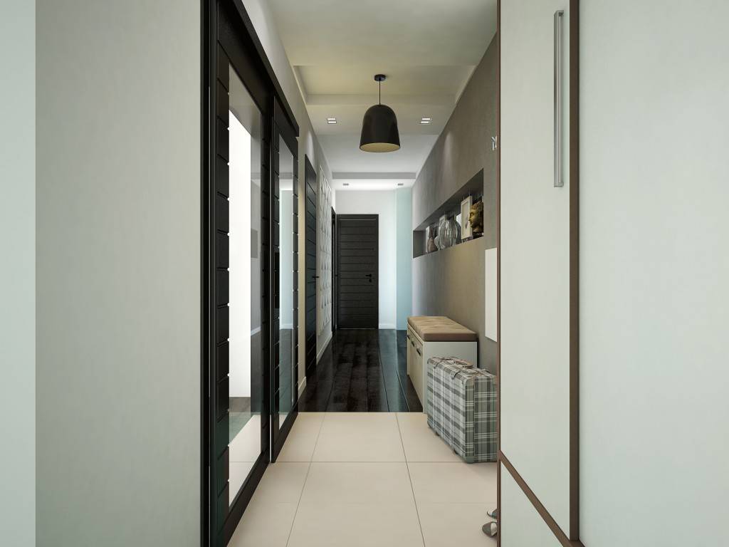 Для длинного коридора отлично пойдет разделение помещения на зоны. У входа можно поставить небольшой пуфик, несколько вешалок. Интересным вариантом будет установка многофункционального блока, где сразу будет место для сидения, место для обуви и т. д.