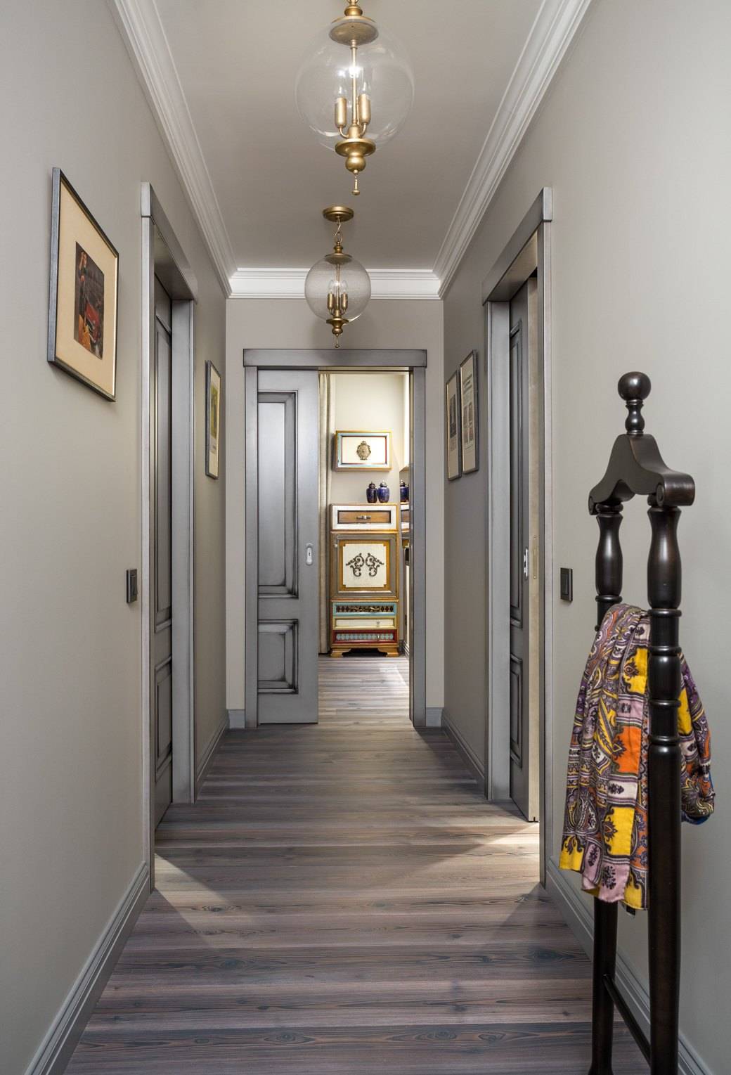 У больших коридоров проблема абсолютна противоположная. Если при обустройстве маленького пространства надо позаботиться о том, чтобы это самое пространство использовалось практично, то в просторном коридоре надо распределить мебель так, чтобы не осталось пустых блоков. Тут на помощь как раз приходит перепланировка гардероба.