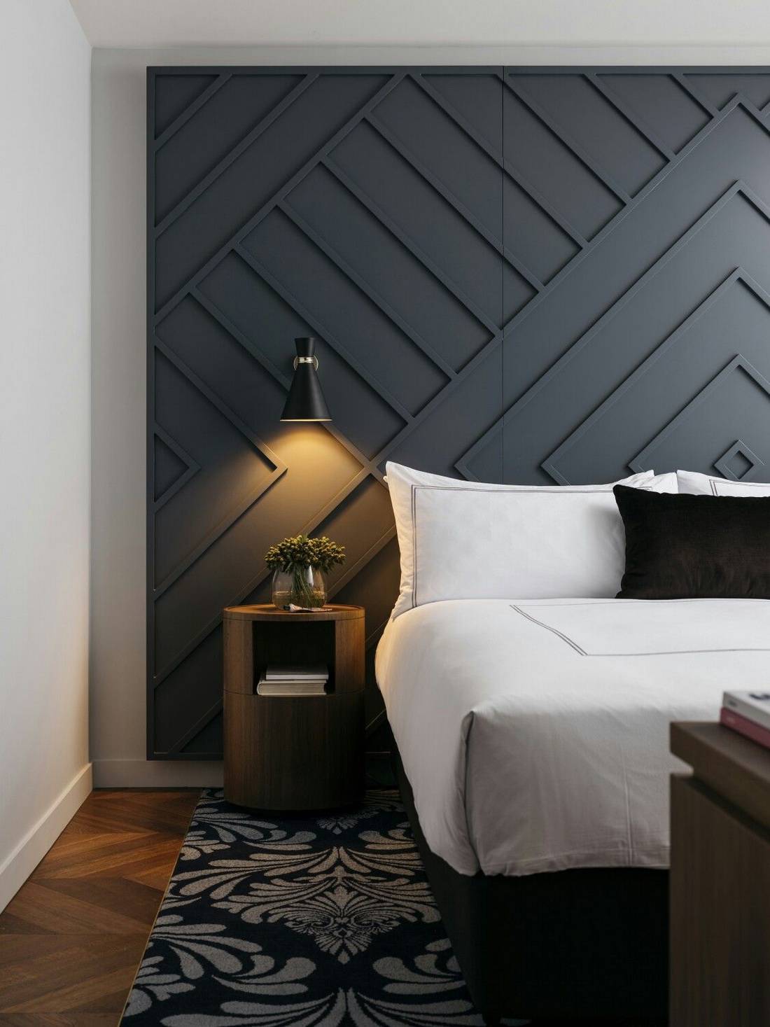 Высокое изголовье добавит уюта, при этом оставаясь практичным. Есть множество вариантов создания, которые сводятся в основном к увеличению высоты деталей. Однако есть более смелые решения, которые сделать легко и просто.