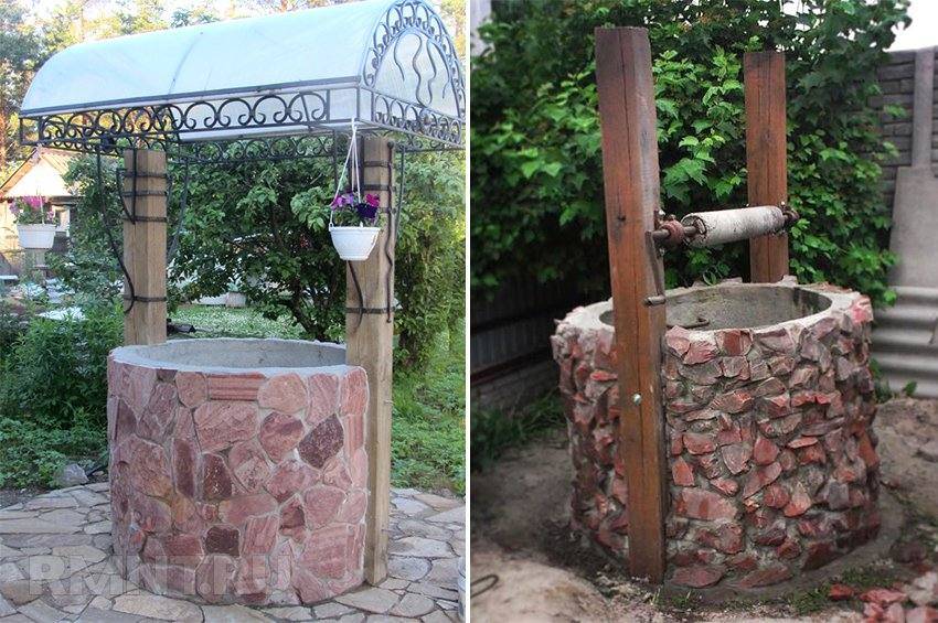 Если какая-то сторона колодца у вас вышла не слишком удачно – прикройте ее цветущим кустарником или высокорослыми растениями (каннами, плетущимися розами и пр.). Не бойтесь фантазировать, ведь каждый колодец тем и красив, что он индивидуален.