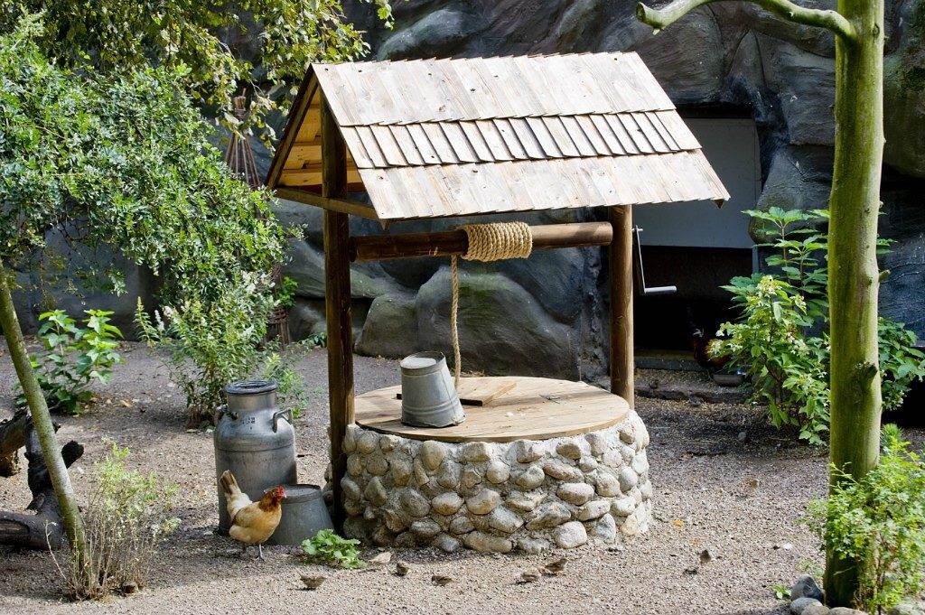 Колодец в форме мельницы обычно поворачивают лицевой стороной к наиболее оживленной части участка