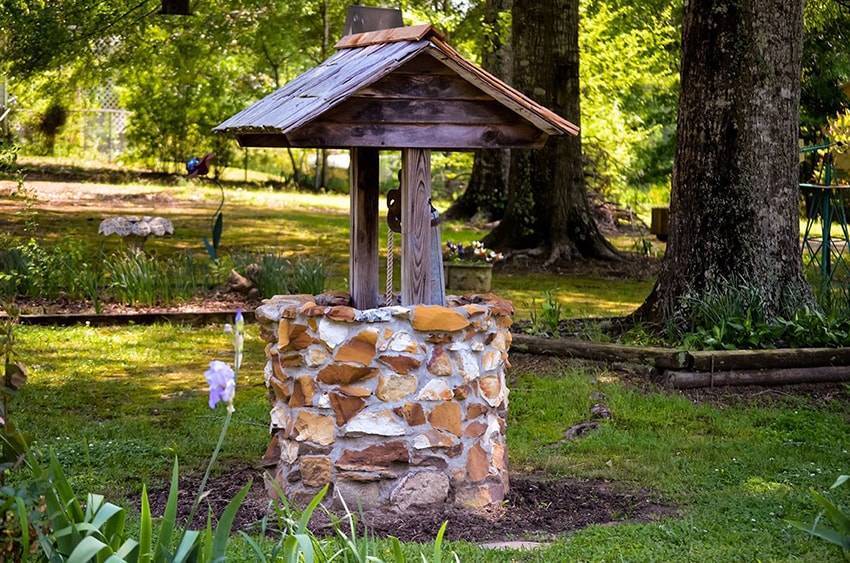 Очень часто на дачах можно увидеть колодцы-образы, которые не имеют ярко выраженной стилистики, поэтому подходят к любым ландшафтам.