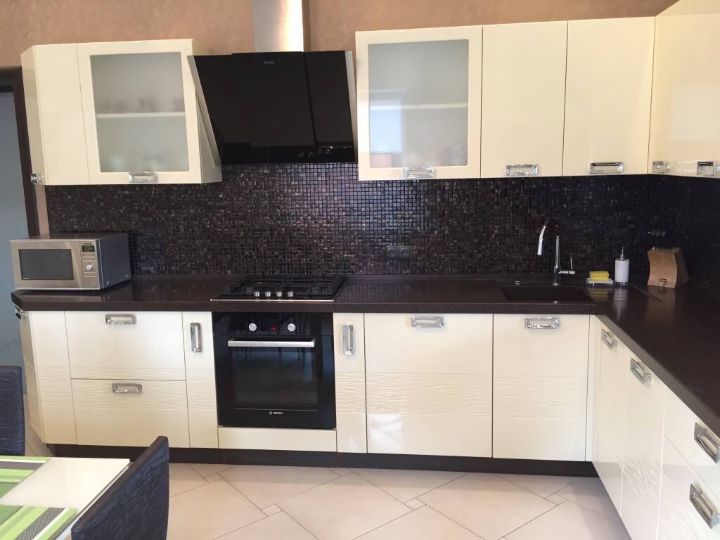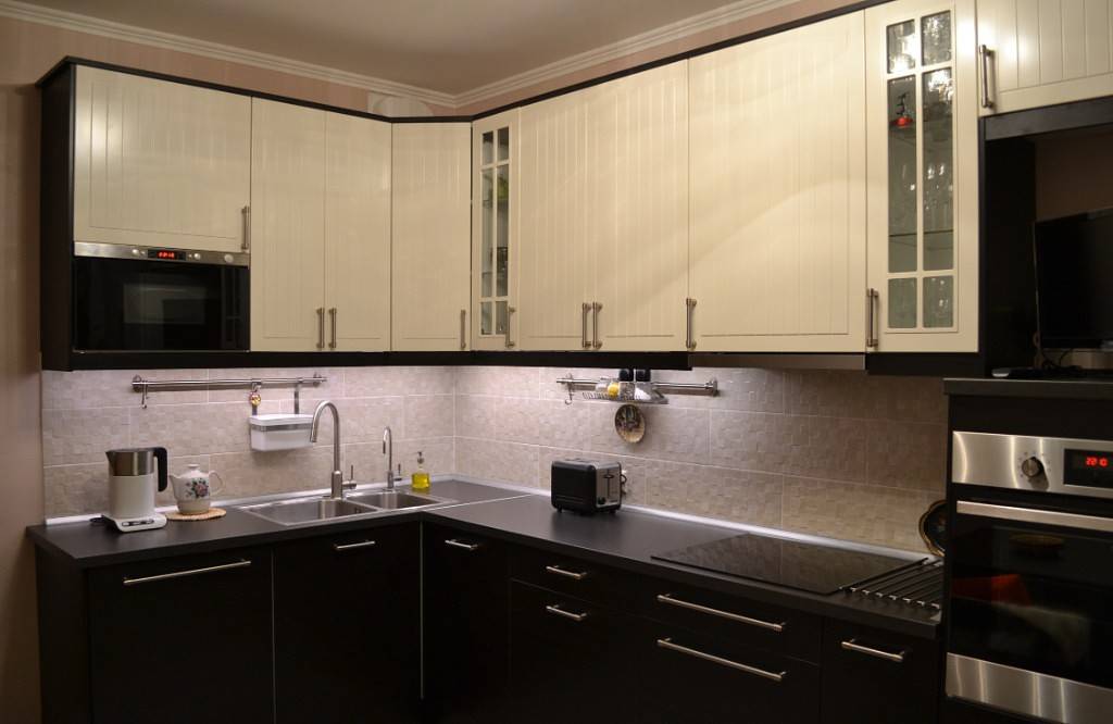 Уместно использовать в дизайне ванильной кухни и черный цвет. Главное – не переборщить с его количеством, иначе интерьер получится мрачным. Используйте черный для расстановки акцентов. В таком цвете может быть выполнена бытовая техника или аксессуары. Разбавление ванильной палитры черным – это оригинальный прием. Подобный дизайн не будет визуально сжимать пространство.