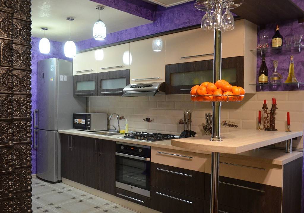 Если же кухня просторная, то в ней можно прибегнуть и к использованию более «резких» и смелых цветов, например, фиолетового, бордового, кораллового или красного.