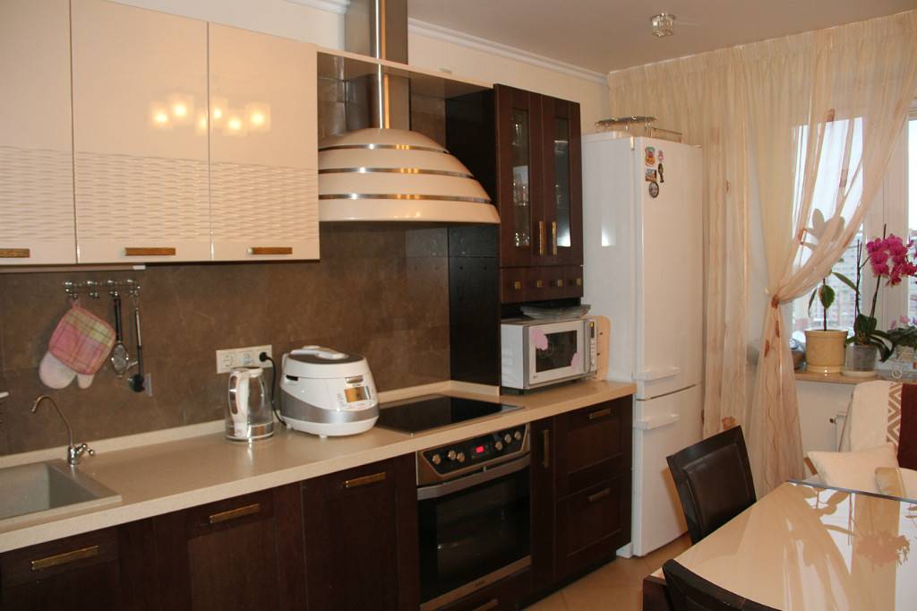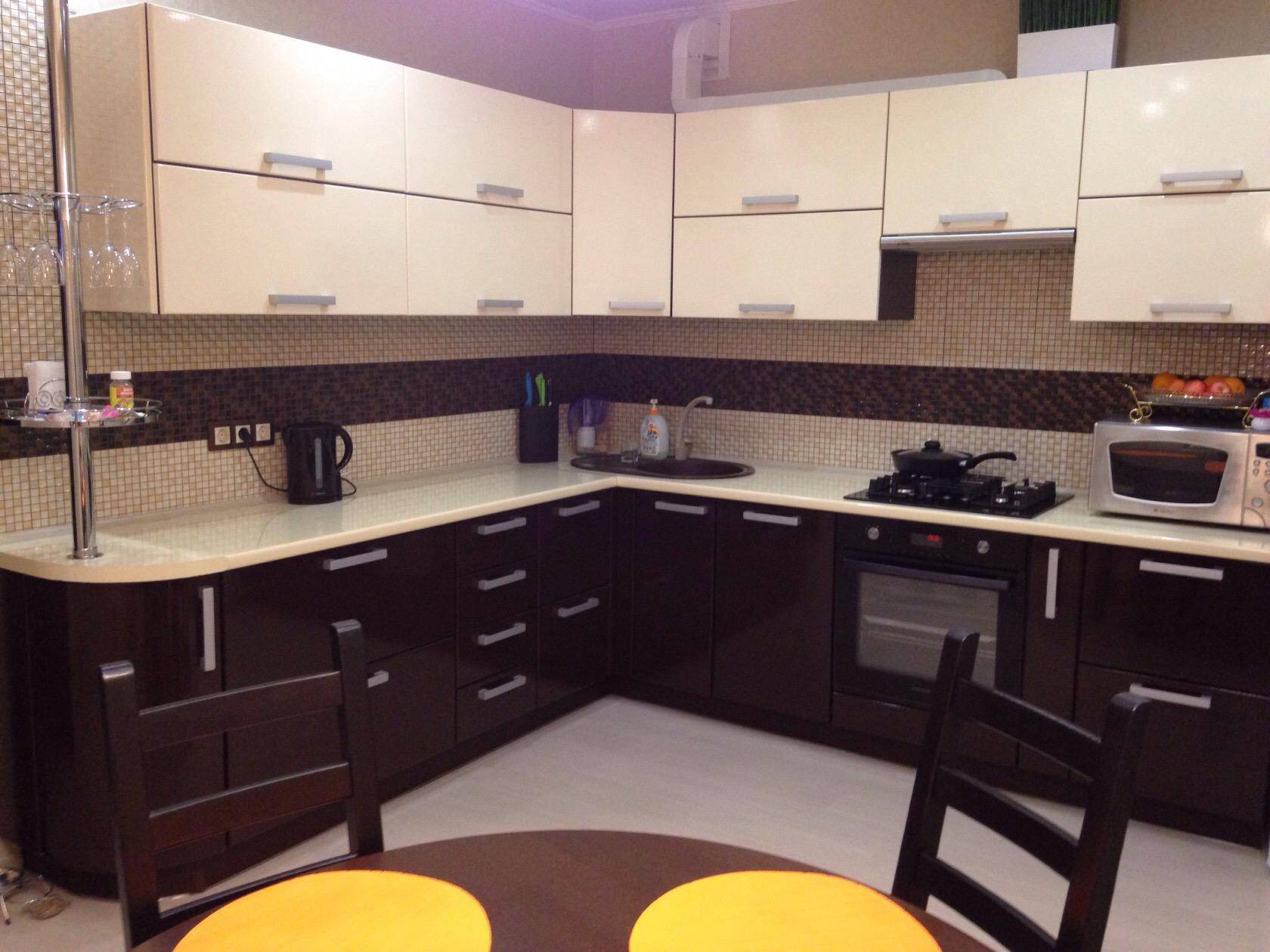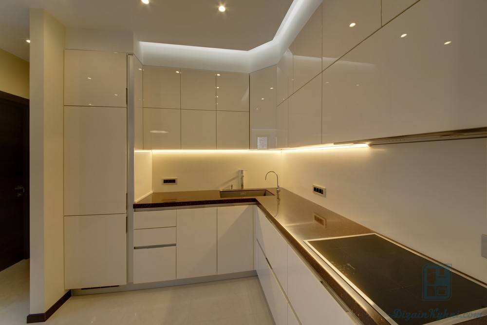 Отличительные особенности ванильной кухни в стиле хай-тек – глянцевые фасады, хромированные детали и контрастные цветовые комбинации. Данное направление подходит и для небольших кухонь, и для просторных помещений.