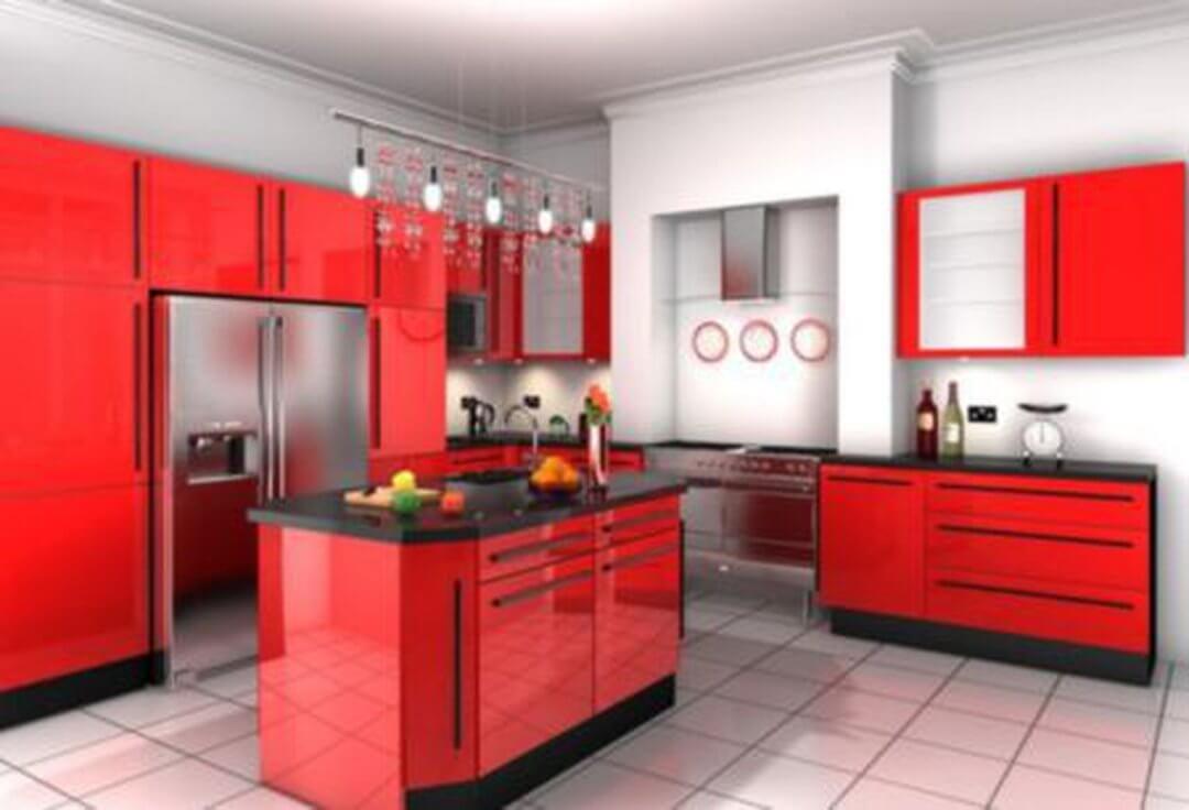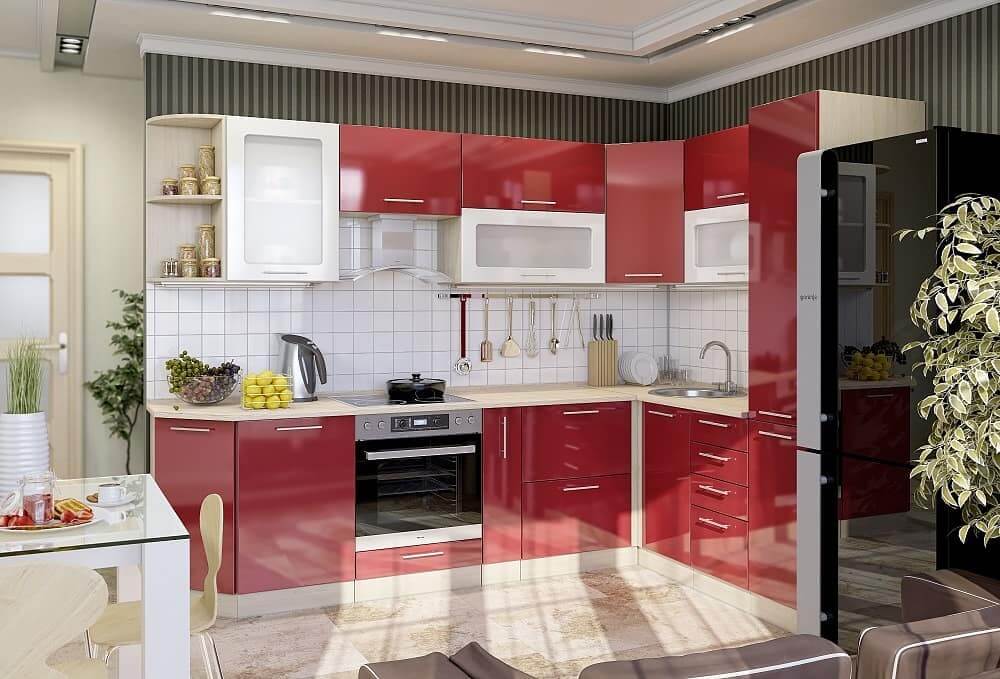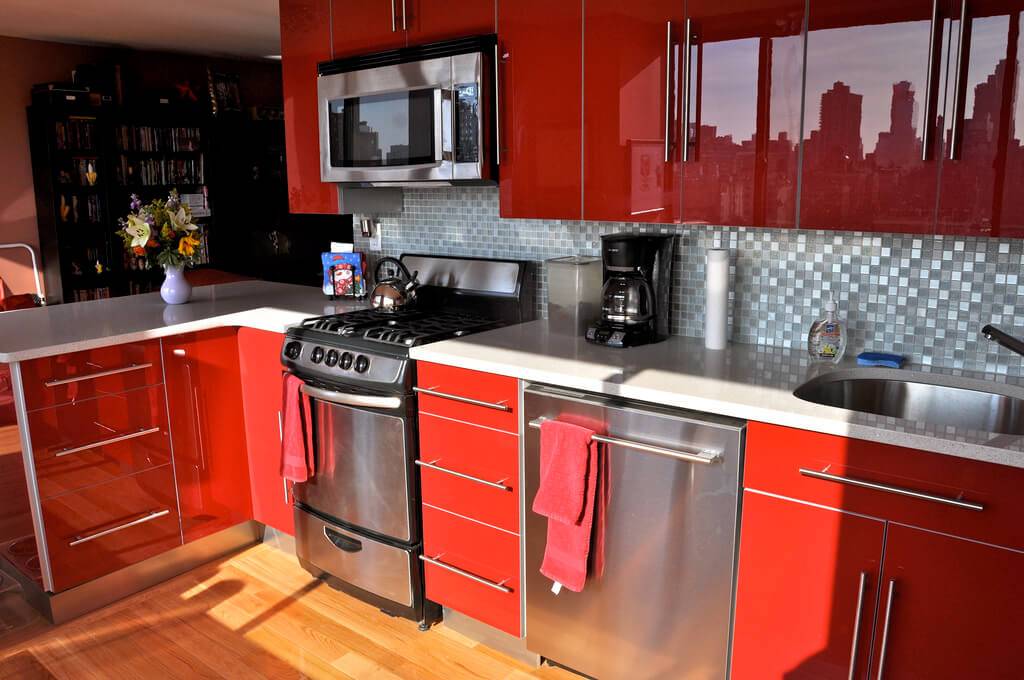 Все оттенки красного смотрятся органично в современных интерьерах. Особенно привлекательно и эффектно мебель в таких красках смотрится, если комбинируется с белоснежным или черным фартуком.