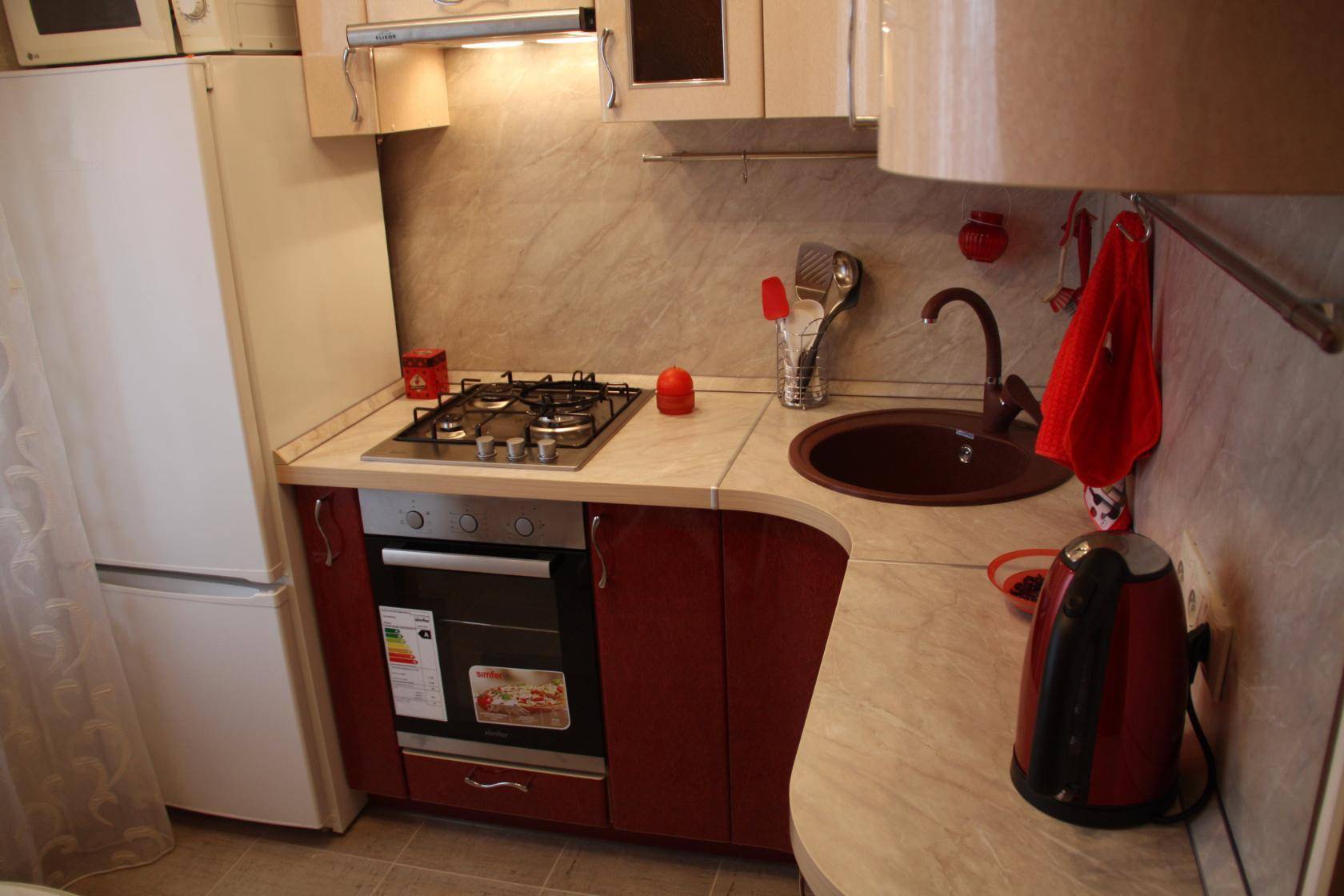 Красно-бежевый интерьер выглядит стильно и элегантно. Он не образует слишком резких контрастов, как сочетание красного с черным или белым, но зато создает на кухне атмосферу комфорта, домашнего тепла и семейного уюта.