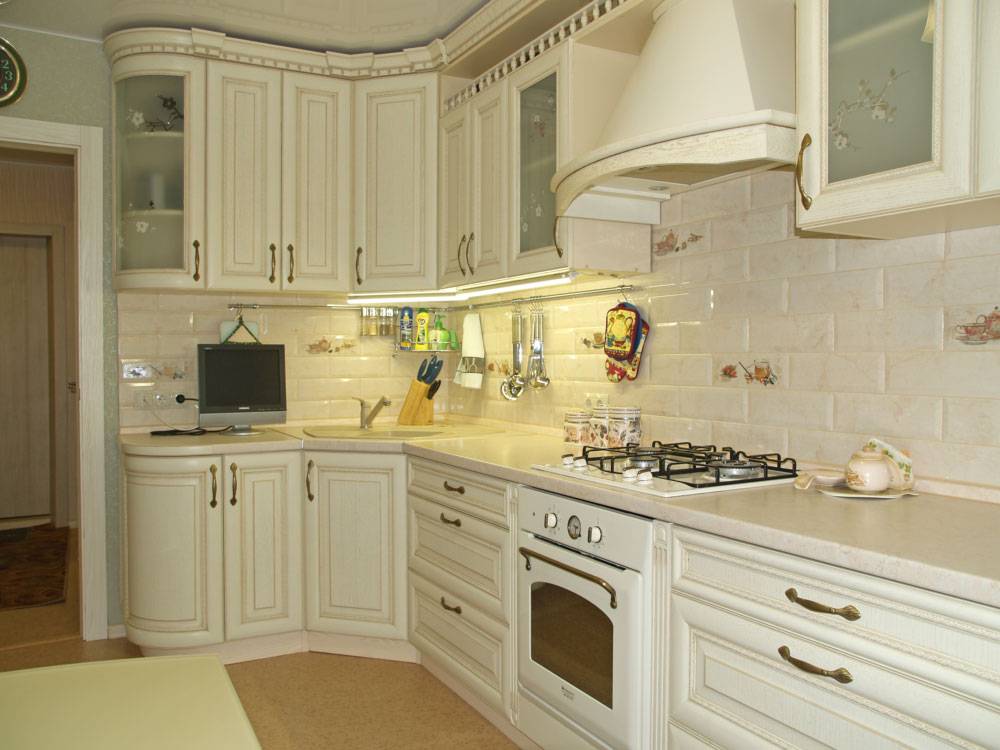 Если хотите, чтобы кухня в ванильной гамме выглядела актуально и презентабельно, оформите ее в классическом стиле. В таком интерьере должна преобладать натуральная древесина. Мебель нередко декорируют резьбой и оригинальными фурнитурными элементами. Ванильную гамму удачно дополнят оттенки шоколадного и красного. Отделка поверхностей в цвете ванили и коричневая мебель – это выбор консерваторов, но не думайте, что интерьер получится скучным. Классика всегда ассоциируется с респектабельностью.