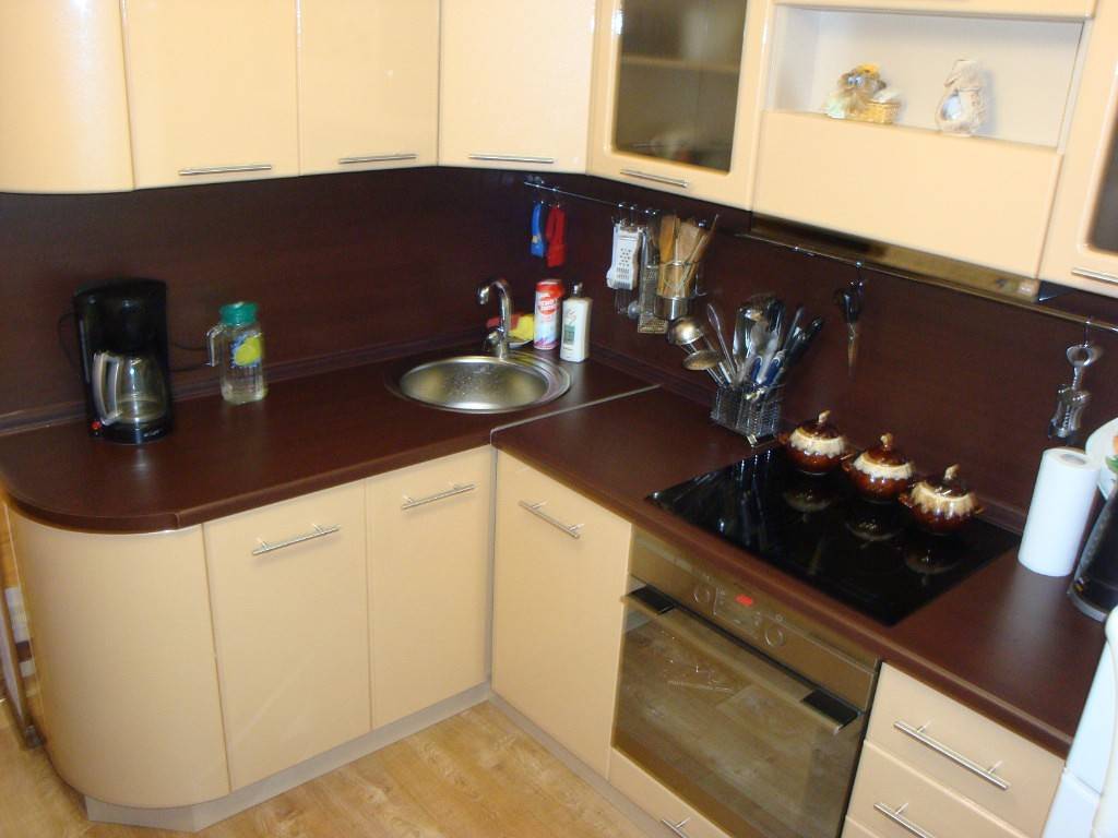Здесь снова важно выбирать не монохромное покрытие, а с каким-либо рисунком — такая столешница намного более практичная