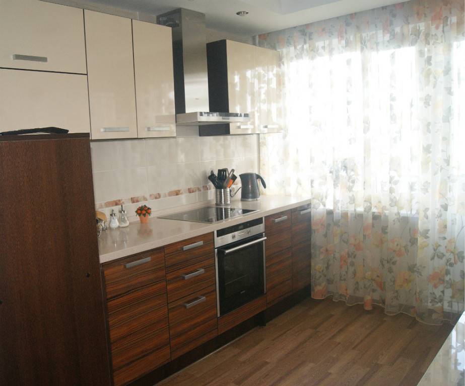 На такой кухне будут уместны мебель или паркет из натурального дерева