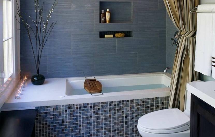 Дизайн совмещенного санузла в хрущевке может быть разным, здесь все зависит от фантазии и вкуса. Для размещения хозяйственных средств и средств личной гигиены, можно воспользоваться навесными шкафчиками или высокой этажеркой от пола, до потолка. Для зрительного увеличения пространства используются большие зеркала или зеркальное панно во всю стену. При выборе керамической плитки по цвету, санузел совмещенный маленький не должен быть кричащим с большим орнаментом или слишком темным. Для маленьких помещений, такой цветовой дизайн неприемлем, зрительно он сужает пространство. Поэтому, для маленькой ванны, как нельзя лучше, подойдут светлые тона с настенной мозаикой. Сантехнику, в данном случае, тоже следует выбирать светлых тонов.