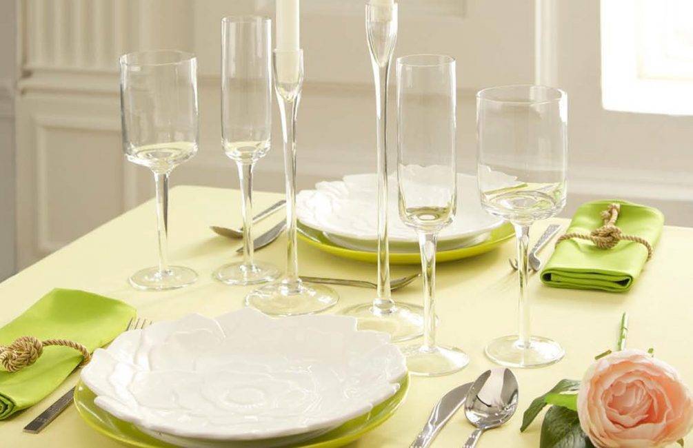 При правильной сервировке стола на одну персону приходиться несколько тарелок, стаканов и столовых приборов, которые выбираются в зависимости от характера и времени трапезы.