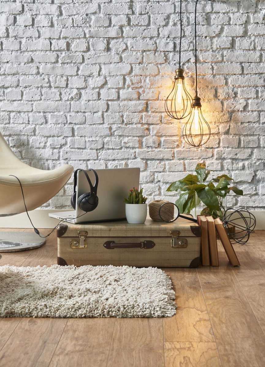 - можно одну из вертикальных поверхностей частично обложить декоративным кирпичом или природным камнем — элементами стилей лофт и минимализм. Если комната вытянутая, использовать нужно одну из узких стен, если квадратная — любую, кроме той, на которой расположена оконная ниша;