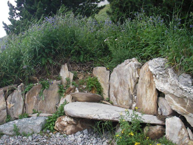 Для сооружения альпийской горки чаще всего применяют скальные породы. Это может быть гранит, песчаник, базальт, известняк. Туф, доломит и ракушечник желательно не использовать, поскольку они обладают высокой водопроницаемостью.