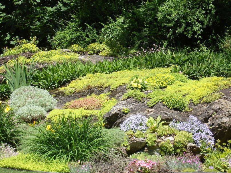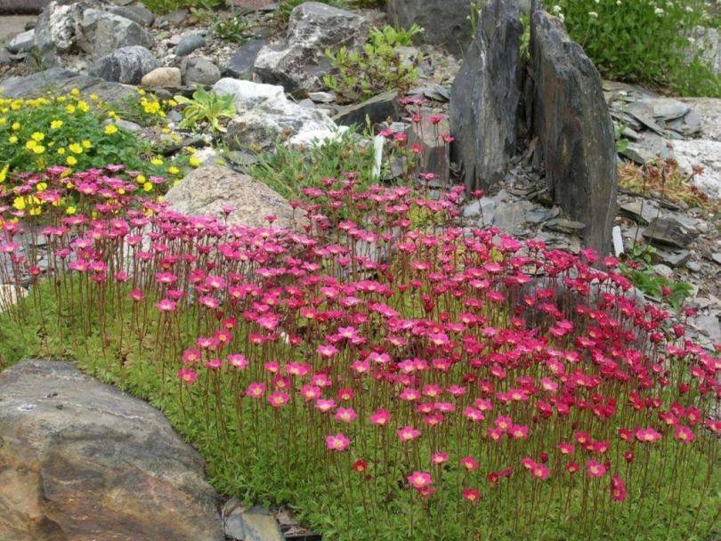 Лучше всего выбирать такие цветущие растения, чтобы они цвели в разное время для красивого внешнего вида горки в течение сезона.