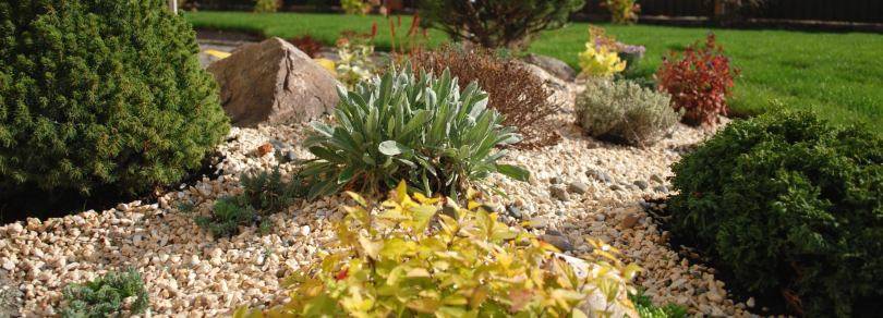 Использование гальки, гравия, дробленого сланца позволяет заполнить пустые пространства и оформить границы рокария