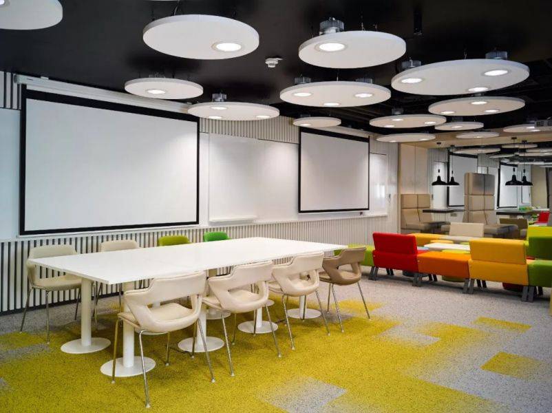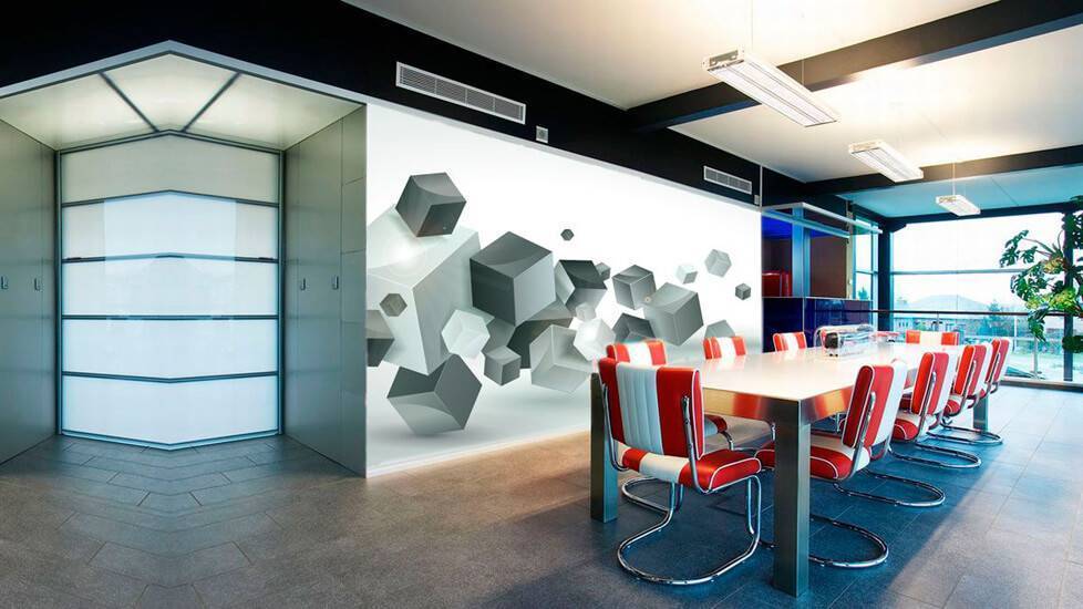 Холодные нейтральные цвета создают строгую обстановку и формируют деловое настроение, что способствует более качественной сосредоточенности. Теплые насыщенные тона будут актуальны для творческой атмосферы, они больше располагают к общению и создают, если можно так выразиться, дружественный рабочий климат. Теплые цвета идеально подойдут для комнат переговоров или для демонстрационных залов.