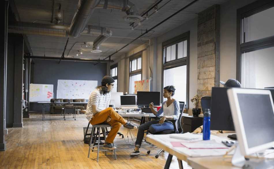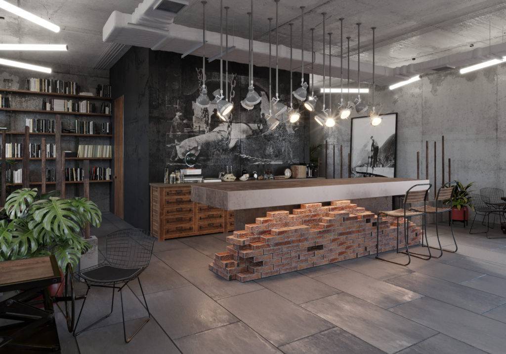 - Лофт. Это лучший формат для тех офисов, которые располагаются в зданиях бывших заводов или фабрик. Открытые коммуникации, кирпичные стены, высокие потолки – все это как раз главные характеристики лофта. Также это отличный стиль для компаний, связанных с каким-либо творческим процессом, а также его легко сочетать с любым корпоративным или строгим стилем.