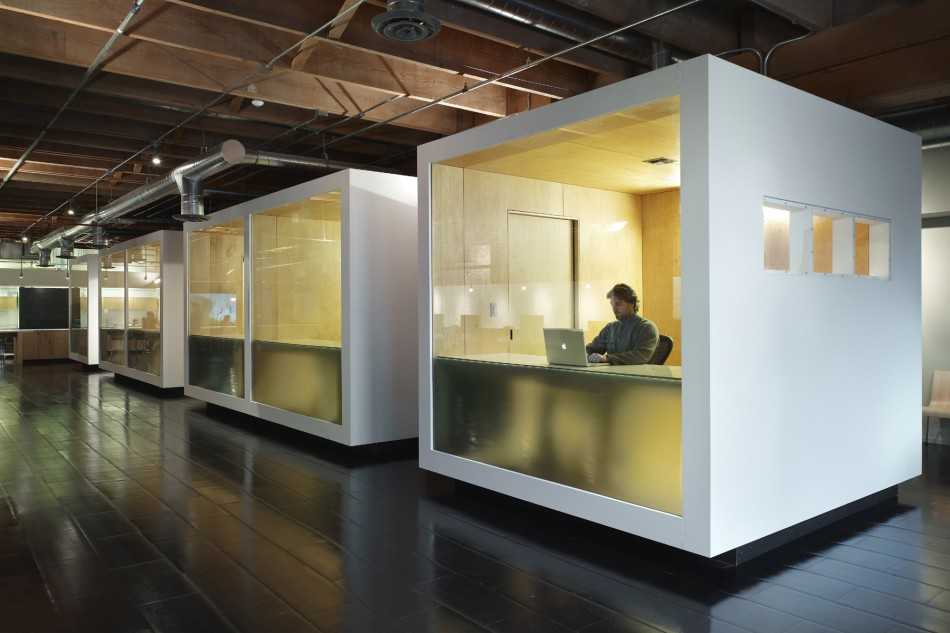 Самый дешевый вариант – это открытое пространство, где планировка, по сути, выполняется с помощью мобильных перегородок и мебели. Кабинетная система значительно дороже, поскольку требует проработки каждой отдельной комнаты и грамотную проводку всех инженерных систем в здании.