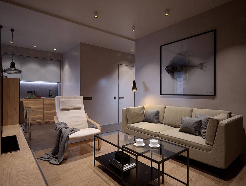 Обустраивая аккуратную 1-комнатную квартиру, должное внимание следует уделить правильному подбору осветительных приборов. Освещение играет далеко не последнюю роль в красоте и гармоничности интерьеров