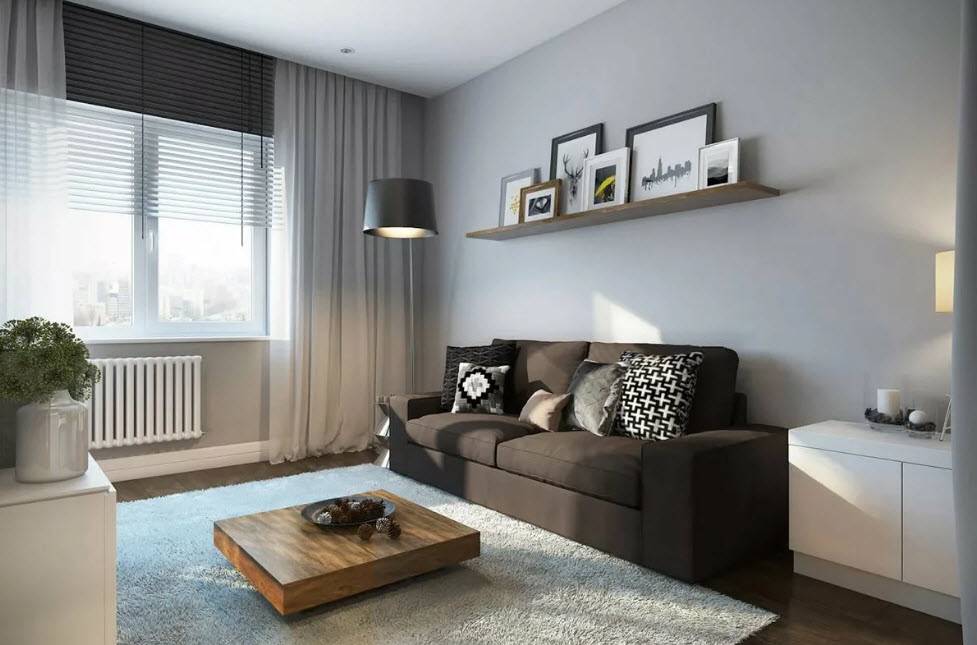 Не придется думать, как спрятать трубы и радиаторы в маленькой квартире. А мебель – простая и в то же время функциональная.